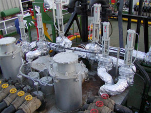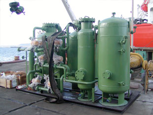 | 16. Installazione a bordo con nave affiancata d'impianto "sistema gas inerte". | 17. Smontaggio, rigenerazione e rimontaggio pompe volumetriche, includenti il rinnovo delle camicie a lobi e riporto degli assi fino a 600 m3/h di portata. | 18. Revisione valvole motorizzate impianti cracking fino a DN 800 e ASA 3000. |