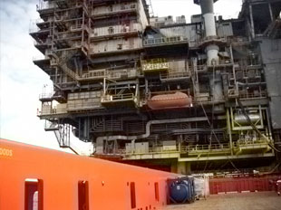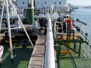| 22. Rinnovo tubazioni in acciaio inox e riparazione di cricche sia in coperta che in cisterna. | 23. Rinnovo di tubazione (in acciaio al carbonio) del carico in coperta e cisterna, mediante calandratura degli stessi fino a Ø 900 mm. | 24. Esperienza ventennale, in lavorazioni diverse su piattaforme. |