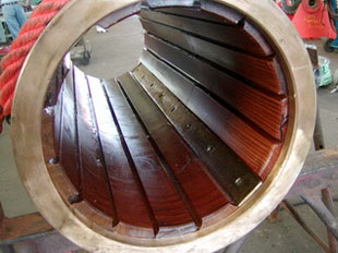 | 13. Revisione alternatori fino a 2000 Kw, incluso il rinnovo dei cuscinetti, rigenerazione degli avvolgimenti e prove al banco. | 14. Rettifica dei piani di un corpo pompa multistadio. | 15. Revisione di rotanti di qualsiasi tipo, prove non distruttive di affidabilità e bilanciatura fino al peso di 18 Ton. |