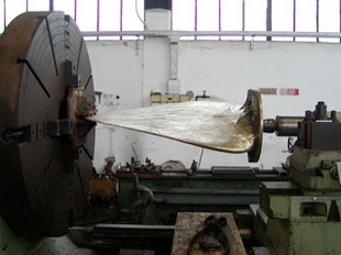 | 4. Rigenerazione pale elica in bronzo-alluminio e inox, mediante raddrizzatura, riporto, ricostruzione parti mancanti e rettifica base appoggio fino a Ø 6000 mm. | 5. Rigenerazione, mediante riporto in arco sommerso e rettifica, di assi portaelica fino a Ø 300 mm. | 6.Rigenerazione di testate motori Diesel 2T e 5T fino a 900mm alesaggio, mediante lavorazione dei piani, rettifica dei seggi vari con esecuzione di prove non distruttive di affidabilità. |