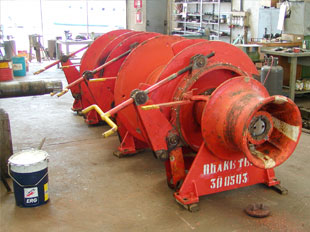 | 10. Revisione completa di salpancore, includente il rinnovo di boccole. Ricarica del barboten, rinnovo bande trainanti e innesti meccanici fino a Ø 200 mm. | 11. Rinnovo assi salpancore in acciaio basso-legato, incluso le prove di laboratorio presenziate dal registro di classe fino a Ø 200 mm. | 12. Rigenerazione, mediante ricarica in arco sommerso e rettifica, di assi salpancore fino a Ø 200 mm. |